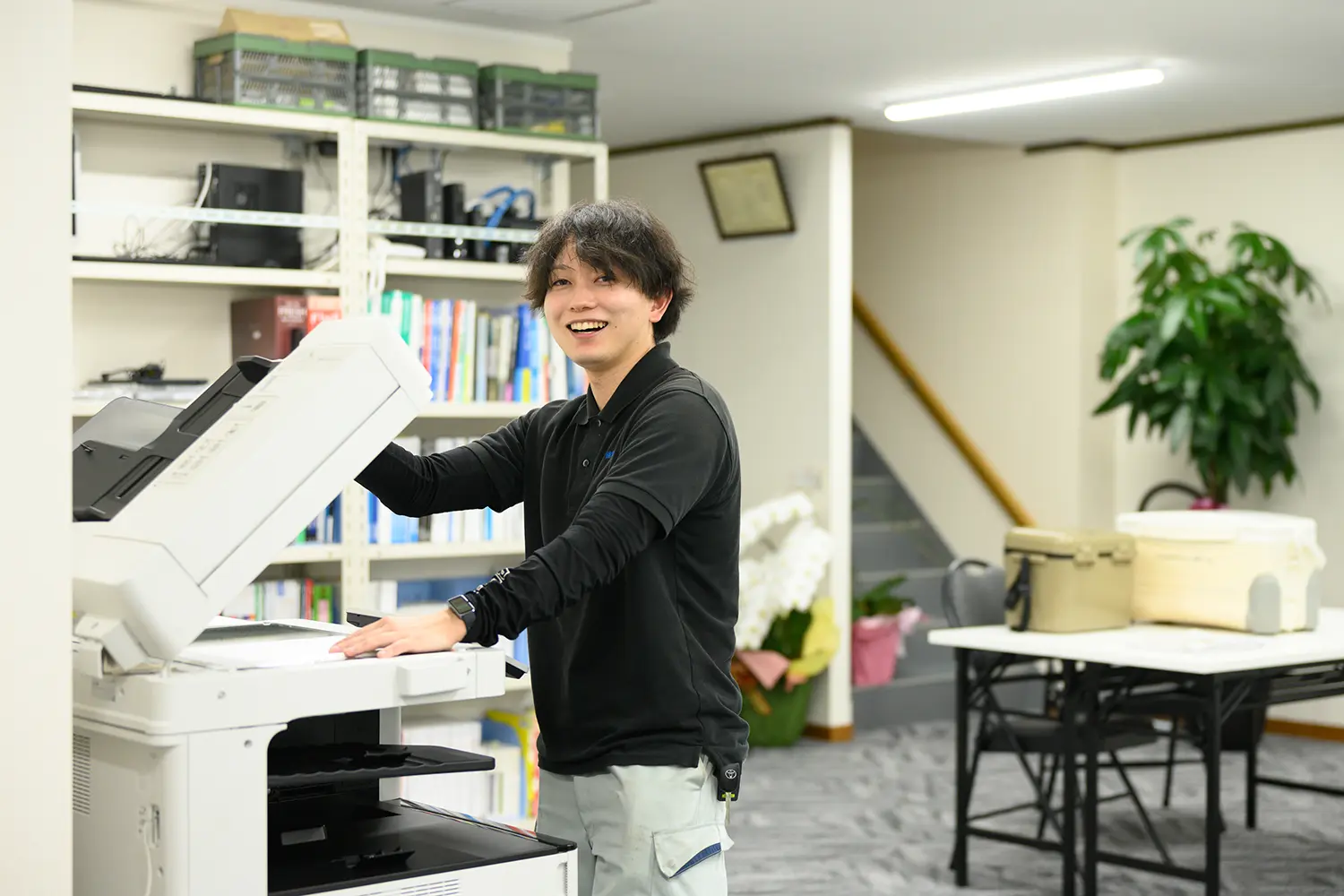 現場が定時で終わりの時は社用車で現場から直帰OK、現場が8時開始の現場であれば自宅から現場へ直行する等、各現場担当者の負担を減らし、定時でみんなが帰宅できるよう、会社としてさまざまな工夫をしています。